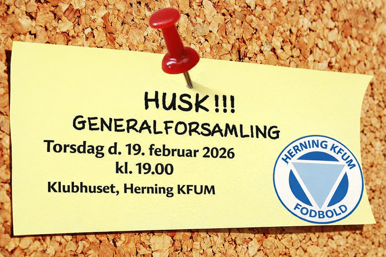 Bestyrelsen indkalder hermed til generalforsamling i Herning KFUM torsdag den 19. februar 2026, kl. 19.00.